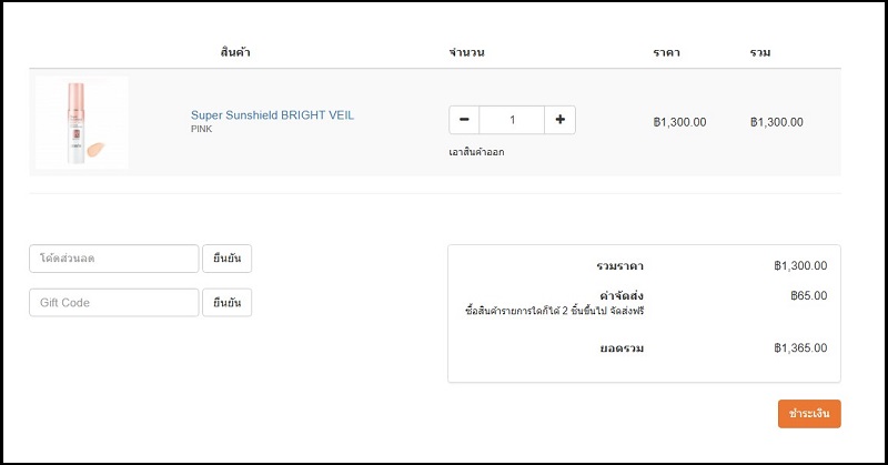 2. ท่านสามารถตรวจสอบหรือแก้ไขจำนวนและรายการสินค้าได้ เมื่อแก้ไขรายการสินค้าเรียบร้อยแล้วให้คลิกที่ปุ่ม “ ชำระเงิน ”